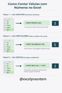 Neste artigo iremos mostrar exatamente qual função usar em cada situação: CONT.NÚM, CONT.VALORES ou CONT.SE.