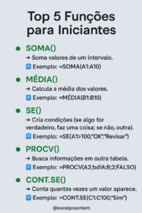 Estas não são funções aleatórias. São as que você vai usar repetidamente, todo dia, em qualquer trabalho que envolva Excel.