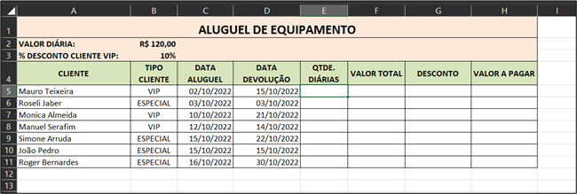 - Vamos calcular o número de diárias, que é a Data de Devolução – Data Aluguel. No entanto, devemos colocar uma condição nesse cálculo, que é: