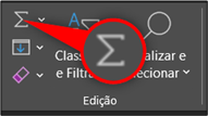 Uma outra forma de inserir a função na célula é pela seleção da função SOMA, no grupo Edição da guia Página Inicial.