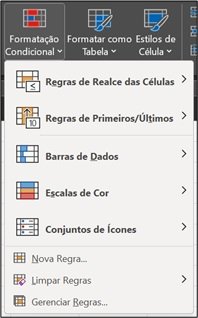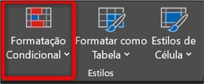 A ferramenta que permite formatar condicionalmente está no grupo Estilos da guia Página Inicial.