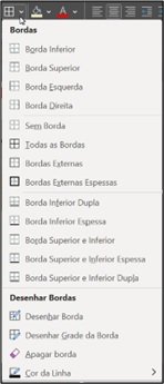 Nesse grupo temos ferramentas para formatação de fontes (letras), bordas e preenchimentos.