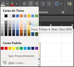- Não desfaça a seleção e clique na ferramenta Cor do Preenchimento. Selecione a cor Ouro, Ênfase 4, Mais Claro 80%.