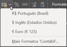 - Formate como moeda, selecionando a ferramenta Formato de Número de Contabilização no grupo Número. Selecione a opção R$ Português Brasil.