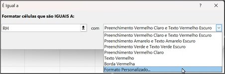 - Digite RH e escolha Formato Personalizado….