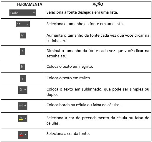 Nesse curso você vai utilizar algumas dessas ferramentas que estão nos grupos Fonte, Alinhamento, Número e Estilos.