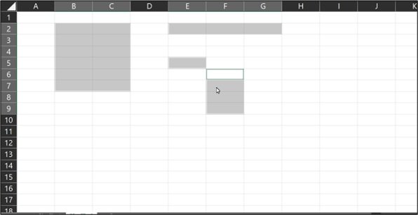 Você também pode utilizar a tecla Shift: clique na primeira célula desejada, mantenha pressionada a tecla Shift e utilize as teclas de direção para efetuar a seleção até a última célula.