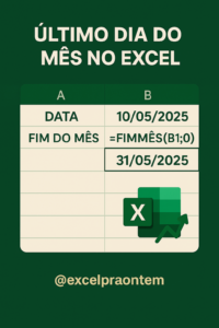 =FIMMÊS(“10/05/2025”;0) → 31/05/2025 (último dia de maio)
