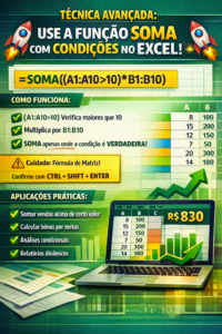 A maioria das pessoas sabe que para somar com critérios existe o SOMASE e o SOMASES. Mas existe uma técnica avançada usando a própria função SOMA que é ainda mais flexível e poderosa.