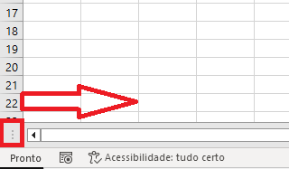 Neste segundo cenário, nos temos que a guia de planilhas “sumiu” porque a barra de rolagem sobrepôs a aba de planilhas.