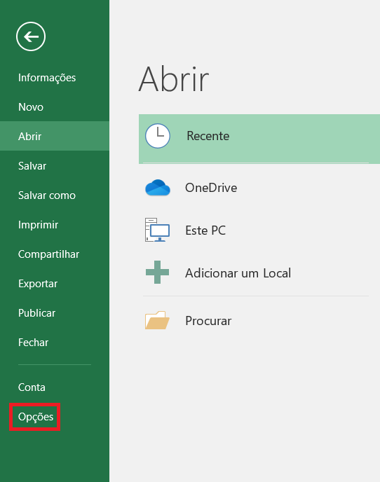 Na janela que irá abrir, clique em “Opções”.